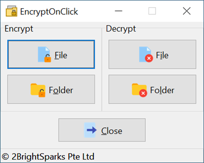 EncryptOnClick 免费软件就像雇用您自己的经验丰富的数据安全员,他们确保您想要保护的文件安全且不被其他人看到,保持这种状态。该程序使用起来非常简单,并具有 256 位 AES 加密功能。您还可以选择加密 Zip 文件名以确保完全安全。