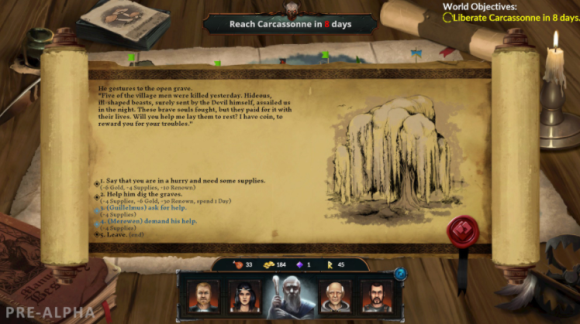 交涉,易物,战斗。应对挑战。接受损失。招募新的英雄。赚取金钱,购买补给,获得声望。