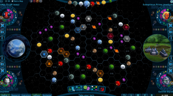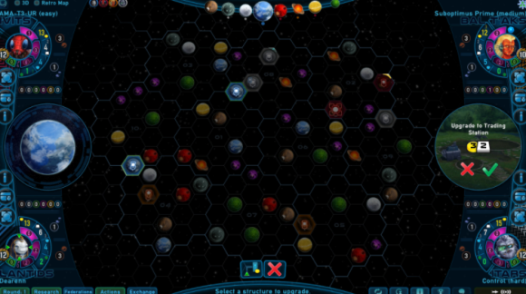 在游戏中,你将会登陆新的星球,将矿产基地升级为更好的建筑,并且将各个星球联合起来成为联邦。你可以自由选择:是在其他种族附近进行开拓,从而获得能量和贸易伙伴,还是独辟蹊径,从而能不受约束地扩张?