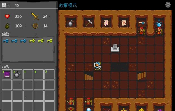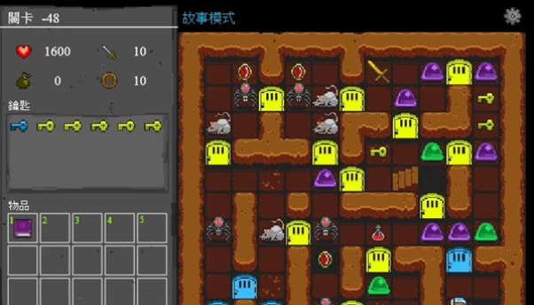 钥匙:不同颜色对应着不同颜色的门,开启一个门后对应的钥匙就会消失,缺少钥匙在碰到商人有机会可以购买,