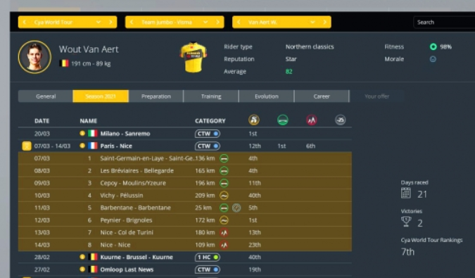 所有这些都提供了更动态化的玩法:基于临时日历,你可能需要在一年中修改你的计划,例如,在重大目标前的最后一刻取消一个重要的比赛,因为你的车手已经达到了他的疲劳极限。