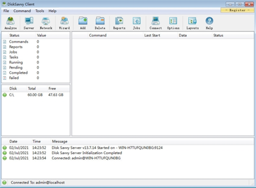 1、提供了一个完整的客户端 GUI 应用程序和一个命令行实用程序,可用于在本地或通过网络控制一个或多个 DiskSavvy 服务器。