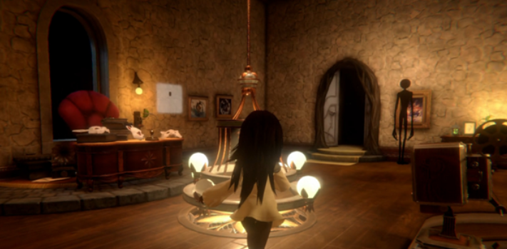 同时触发剧情,小女孩掉落,左边房间开放,可以进入,在桌布下方解锁隐藏曲Invite