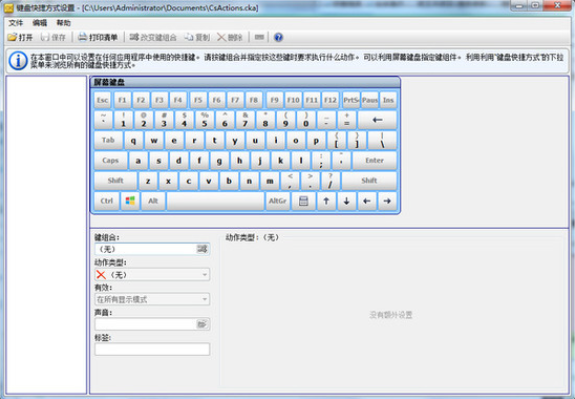 要删除以前指定的键盘快捷键,请在操作类型字段中选择(无)。
