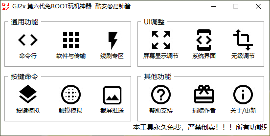晨钟酱gj2x搞机工具箱最新版是无需root的手机管理神器,由大神开发打造而来,能够对几乎所有的安卓手机进行操作,其功能包括了线刷、ui调整、按键模拟等等,让用户可以更加自由地定义自己的手机。