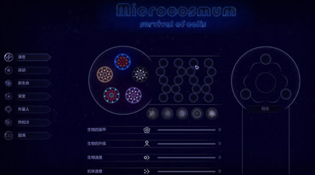 4、设置中文,进入游戏主菜单MENU、OPTION、LANGUAGE选择中文,这样微生物模拟器(Microcosmum)中文版就设置成功了