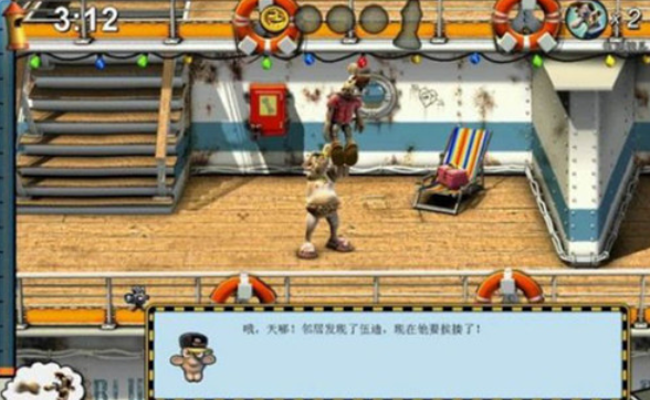 第2关 物品: 鱼翅(垃圾箱),电鳗(水族箱,需要水桶),水桶(用来装电鳗),锯子-剑鱼?头(广告牌),水草(左下角),竹竿(中上),螃蟹(需要竹竿) 流程: 等老头上楼后,先去弄倒耙子,再把水草放在上面,然后把螃蟹放到冰镇桶(放啤酒的)里,然后马上回到左边把鲨鱼翅装在玩具潜艇上,然后上到左上,等老头下去后马上到右上,把电鳗倒到池塘里,用锯子把栏杆做手脚,收工~