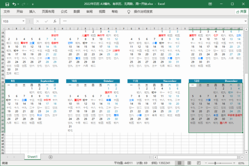 2022年日历 打印版