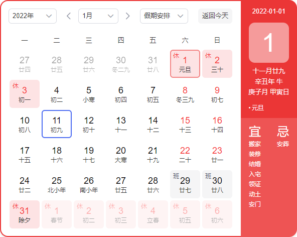 2021年12月31日(周五)-2022年1月2日(周日),共放假3天。