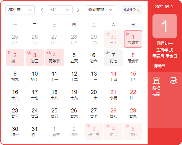 五一劳动节放假安排:
