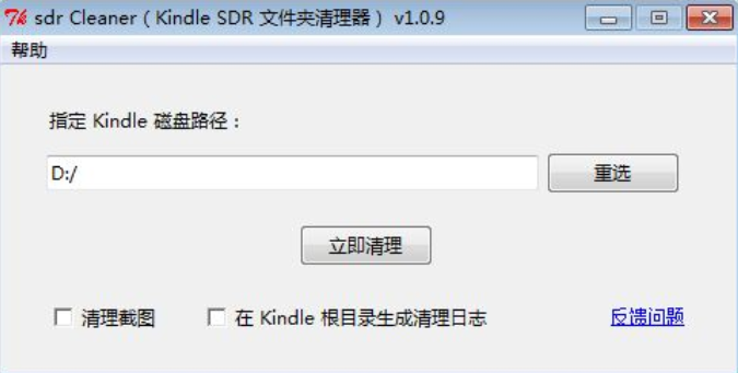 2、运行 sdr-Cleaner,软件会自动检测到 Kindle 磁盘(未检测到请手动选择);