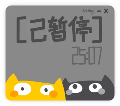 6、心情愉悦。软件上有2个可爱的小猫咪。希望这个可爱的计时器,可以在你工作、学习的时候,带给你一些轻松和快乐。