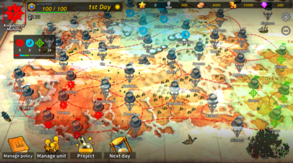 首先,玩家必须执行部队训练、市场激活、粮食生产、招募、城墙加固等政策,以开发土地和招募士兵进行战争。