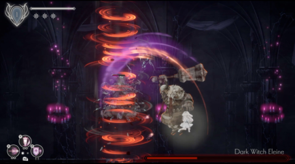 1、你最初的攻击手段是“黑色骑士”,但你每打完一个boss(不管是大boss还是小boss)你都会获得新的主动技能(到后期好像有一堆技能,但只有两组配置,每组配置只能带三个技能),除了平A以外,其它主动技能都是限制次数和CD的,但是可以通过击打地图中的红色花朵/保存点回满。