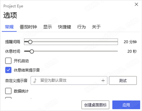 Project Eye默认情况下每20分钟收到—次通知,根据工作时间不同,可以自己定义