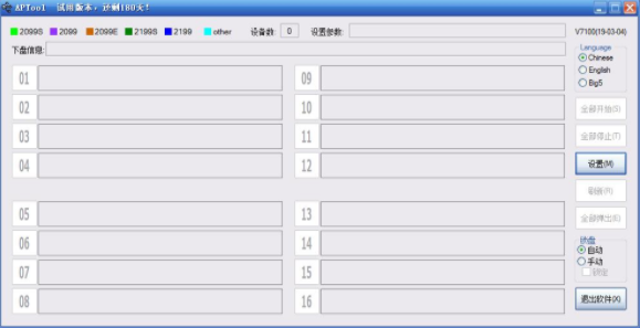 1、打开APToolV6A.exe软件显示量产界面,当您设置完毕参数以后就可以在软件界面执行量产;