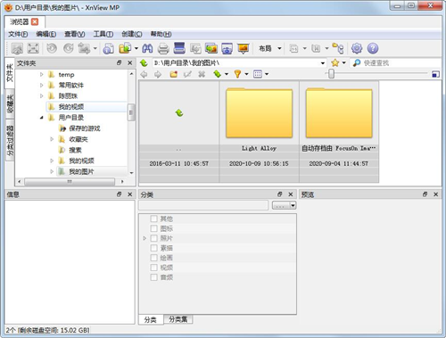 XnView MP(图片浏览工具)是一款方便好用的图片浏览工具,支持浏览不同格式类型的图片文件,并且支持幻灯片播放。软件支持100多种图片格式,XnView MP还具有浏览器、幻灯片、屏幕捕捉、缩略图制作、批处理转换、十六进制浏览、拖放、通讯录、扫描输入等功能。感兴趣的网友快来下载体验!