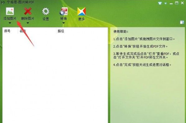 1、下载安装后打开软件,点击界面左上方的“添加图片”按钮。