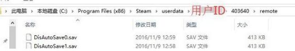 Steam存档位置:Steam\userdata\(steamID)\403640\remote