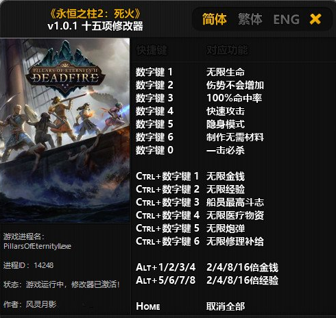 永恒之柱2死亡之火十五项修改器 v1.0.1风灵月影版软件截图