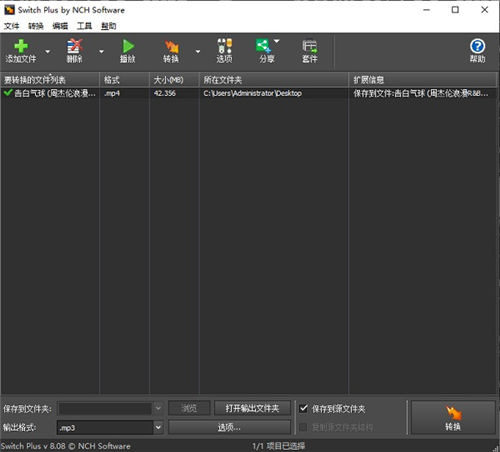 Switch Audio File Converter可以快速转换声音文件和所有流行的音频格式,可以包括wav,mp3,ogg,flac,aac,wma,au,aiff,ogg,msv,dvf,vox,atrac,gsm,各种音频dss的文件格式和其他格式会转换为mp3或wav。