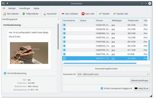 Converseen 是一个批量的图片转换和缩略图生成工具,支持超过100种图像格式,包括:DPX, EXR, GIF, JPEG, JPEG-2000, PDF, PhotoCD, PNG, Postscript, SVG, and TIFF.