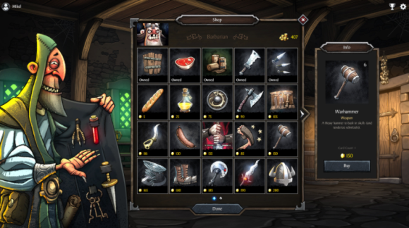 每次任务后,您都可以访问酒馆,在那里您可以从阴暗的商人处购买新卡。