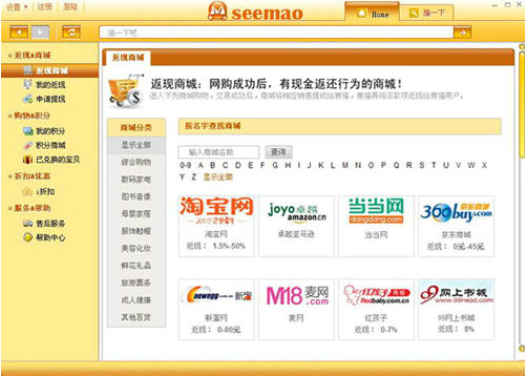 提供所有参与导航服务的联盟商城和商家的返现、折扣等诸多服务。