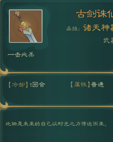《觅长生》弃牌流诛仙存档硬生生的打下来的地狱存档,是由玩家“moon很有爱”分享的地狱难度存档。本存档适合正常游玩,存档最厉害的地方在装备,就是顶级的诛仙剑,杀伤力十分强大。实在遇到难点boss可以替换神器诛仙剑,自带技能一招致命可秒杀任何人物。遇鬼杀鬼与,还有强大的天道尺与混元袍提高生存能力。免疫多数的伤害,技能方面主要是以护盾弃牌流为主,配合裂气斩护盾层数化作输出手段。推荐玩法诛仙与战袍不装备只装备 天道尺主动使用可获得1000护盾 。