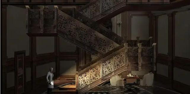 通过1f-2前往2楼区域2f-2搜寻获得硬币*2,通过2f-2前往2f-3时,开门触发黑影,与黑影交互后触发cg,随后可以在后方桌子上取得私印,前往2f-3搜寻后可以取得木块