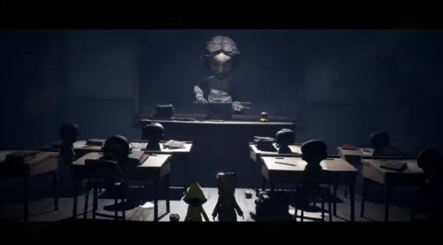 相比对于大多数国内玩家都很陌生的猎人职业,老师这个职业简直是太熟悉了,而且也的确是很多人童年时绕不开的阴影。尽管老师的职责是传道受业解惑,但是在面对好玩好动的孩子们,依然要去约束,而严厉的约束往往会让孩子害怕。游戏中的老师和其他BOSS一样大,而学生们则都与主角一样小,体现的就是老师在孩子心目中的绝对强势,相比一言不合就用教尺重重敲桌子的惊吓人举动,老师的敏锐更让孩子们感到可怕,似乎自己任何的小动作都逃不过老师的眼睛。而在游戏中,老师的这个可怕的“超能力”成为了可以伸得无限长的脖子,以往梁上、排风道这些原本可以长舒一口气的安全地方,在老师这里也都不安全,一样要躲要逃。