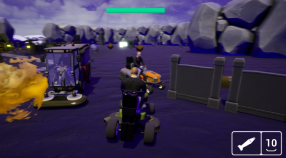 史诗般的割草机游戏传奇将继续,现在您可以使用步枪、榴弹发射器和火焰喷射器等武器驾驶割草机。 你对抗同样配备武器的敌方割草机。 有不同主题的不同竞技场。 第一个版本包含 15 个竞技场。 具有不同主题的竞技场,例如:科幻、西部、美食竞技场等。关卡包含神秘盒子,可以为您提供不同的武器。