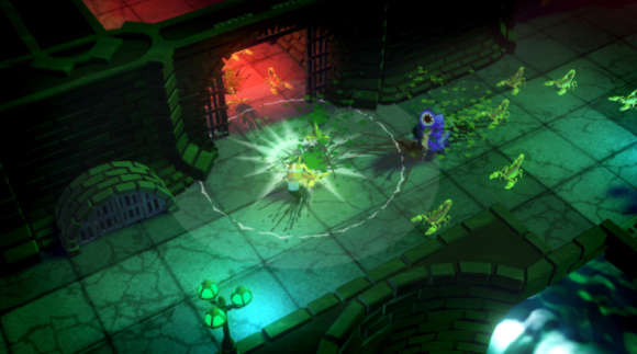 在四个生物群落中战斗:地牢、下水道、黑暗洞靴和巫师城堡。