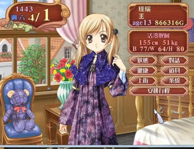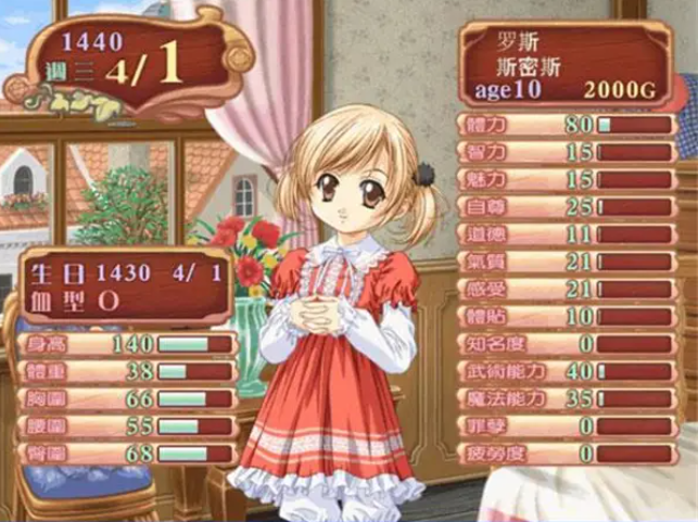 2、在游戏中玩家要对女儿进行各式各样的教育,美少女梦工场4中有理论、武术、魔法、礼仪、艺术、舞蹈六门课程。除了学习之外,游戏中还可以安排女孩出外打工,全部共14种的职业,依据年龄限制以及女儿能力,也有会一些不能选择的职业。