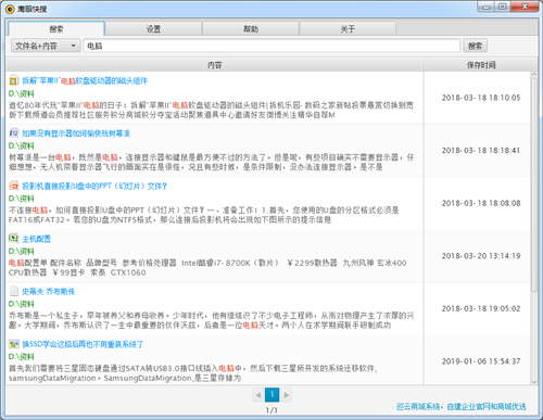 1、支持mht和txt格式搜索文件名和内容,其它格式可搜索文件名