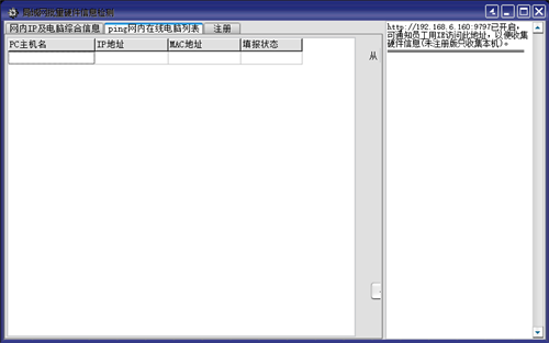 局域网硬件信息批量检测收集绿色版是一款好用出色的系统检测软件,专用于电脑局域网硬件方面,能够比较快速地进行完全的扫描,将所有的使用信息完全显示出来,用户能够更加掌握自己的电脑!硬件检测软件运行之后,作为一个web服务,网管可以通知本单位内网的用户,访问该web服务。用户访问之后产生本机的硬件信息(包括ip地址、mac地址、品牌机序列号、bios号、cpu、主板、内存、硬盘、显卡以及操作系统),并提供用户的姓名、部门、电话号码、资产编号,然后提交。提交之后,网管便收集到该用户的电脑硬件信息以及部门和其个人信息。当每个用户都提交之后,则本单位的电脑硬件信息便生成了。这样统计方便快捷。