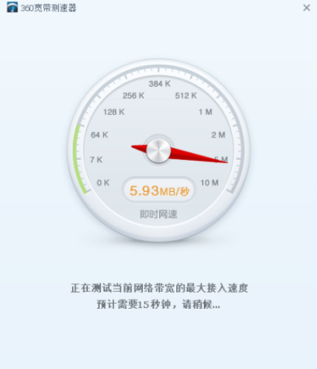 1、启动360网络测速器,启动之后,360网络测速器自动开始测试您的网,络速度,预计需要15秒时间,请耐心等待测试完成;