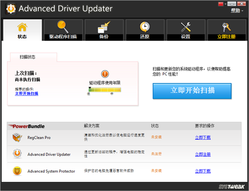 advanced driver updater官方版可以为用户自动适配最新的驱动软件,支持多种类型的驱动,用户在扫描之后可以选择是否更新,除此之外,软件还具有驱动程序的备份、还原等功能。简单好用的驱动程序自动更新工具,使用可帮助用户快速扫描和更新您的系统驱动程序,以便帮助提高您的pc性能!如果你的系统中有过期的驱动,你可以使用本工具来搞定一切,界面简单直观,使用也非常方便,保证你的驱动始终是最新状态!