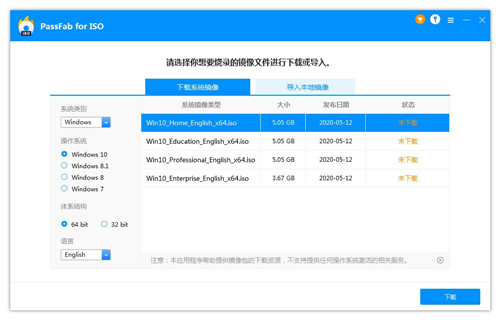注:PassFab for ISO只提供下载资源,不支持Windows操作系统激活。
