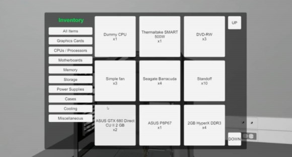 游戏的开始会给你一台空壳机箱,然后打开菜单,你就能选择想装上去的部件。而组装的全程都需要玩家自己动手,如果你点错了位置那就根本装不上,可谓是全程都在手把手教玩家怎么组装。