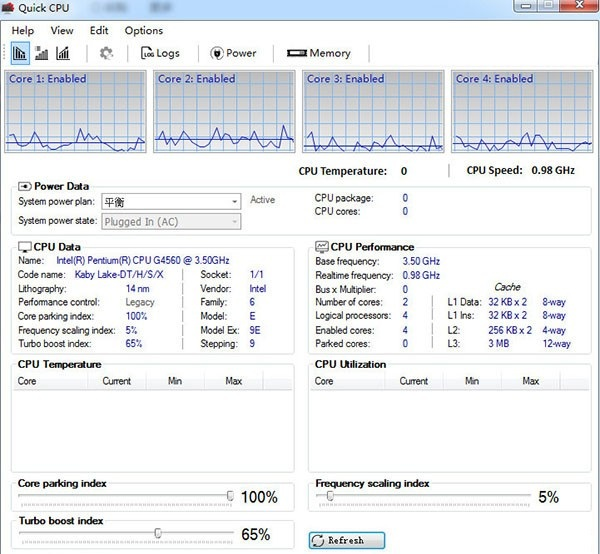 Quick CPU官方版是款非常专业的针对cpu的优化提升软件。可以监控cpu的使用情况,然后进行相应的调整,最后达到提升cpu性能的目的。软件本身体积十分小巧完全不占空间,用起来也简单。可以帮助用户实时监测CPU运行情况,支持微调,提供Core Parking、频率缩放、Turbo Boost、C状态/变速等调整功能。