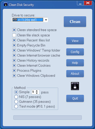 Clean Disk Security是一款磁盘清理工具,通过9种方式来实现磁盘的安全性,该程序可以清除硬盘驱动器上的FREE SPACE,以确保不能删除已删除的文件。清理驱动器的可用空间不会影响现有文件。该程序可用于完全擦除现有文件,以使它们不能被删除。