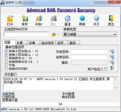 Advanced RAR Password Recovery最新版操作说明: