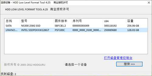 2、选择需要低格的硬盘或者u盘,点“继续”进入下一界面;