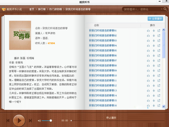 选择说书的章节,就可以播放章节内容了