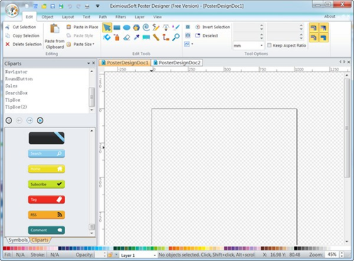 EximiousSoft Poster Designer是一款专业的海报设计软件,其强大的功能能够帮助用户轻松制作海报。软件包含许多基本工具,诸如矩形、椭圆、螺旋、多边形、星形和贝塞尔曲线等等,同时还有文本编辑器,在海报上添加文字,然后自由布局以及添加效果。