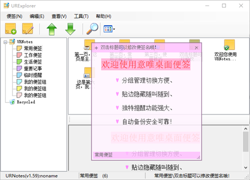 意唯桌面便签官方版让用户能够随时在桌面上进行整理记录,软件自带八个标签组,拥有二十页面的便签,用户可以自由设定使用的皮肤,采用不同的编辑方式来进行使用。像真实便签一样,可以在电脑桌面随意贴放的桌面便利贴提醒软件,你可以用它方便地记录一些临时信息,界面简洁美观、功能强大,还可以设计自己喜欢的个性皮肤。