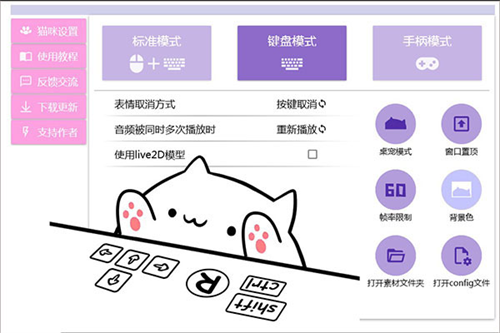 2、小猫具有人性化UI设置界面,键盘鼠标生命动态它跟着一起学动作。