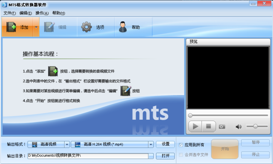 《MTS格式转换器免费版》是一款功能非常的强大,操作十分简单的视频转换工具,mts格式转换器这里可以帮助用户十分轻松的将MTS、M2TS转换成mts格式文件,还可以将用户自己的索尼和松下等摄像机录制的MTS、M2TS格式高清视频转换为其他流行的视频格式,为用户节省了不必要的时间。界面设计也是简约明了,用户可以一眼就看到自己想要的操作在哪里,没有什么复杂的操作,也没有什么付费的转换,还支持刻录光盘播放及保存。