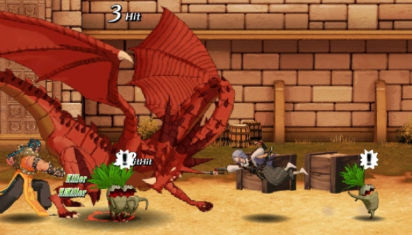 在接触本作之前,个人一直都以为这款游戏是传统的2D横版游戏而已,然而当实际打开游戏之后才发现,本作竟然是3D游戏。确实有些吃惊。游戏的玩法与大多2D横版还是有一些差别的,比如想挑换位置,需要玩家按着防御键,然后再按上或下才可调换位置,这让平时玩习惯传统2D横版游戏的玩家有些许的不适应。完善并且简单的出招系统,很容易就可以连出一套漂亮的连续技,可以挫招的横版,也是少见,不过游戏并没有提供出招表,所以如何去连击,需要玩家自己尝试了。剧情方面由于没有中文来翻译,只能靠猜的,但即便如此,也是能看到一些搞笑的场景,有那种:我不知道你在说什么,但我就觉得很欢乐。这种感觉。